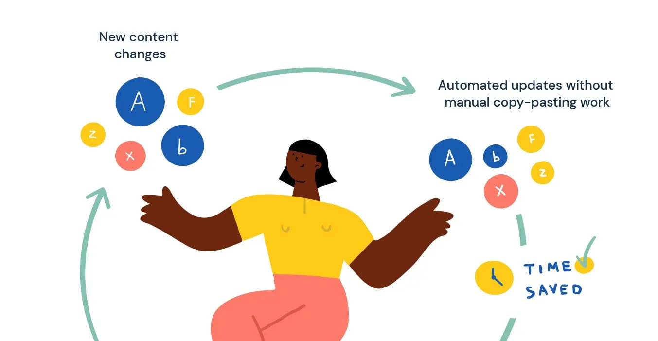 Not only is this faster, it also helps you avoid mistakes or inconsistencies across different language versions whenever there are content changes.