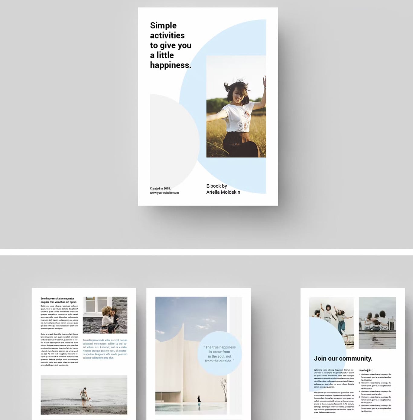 A serene combination for your ebook. This white and light blue template presents your content elegantly.