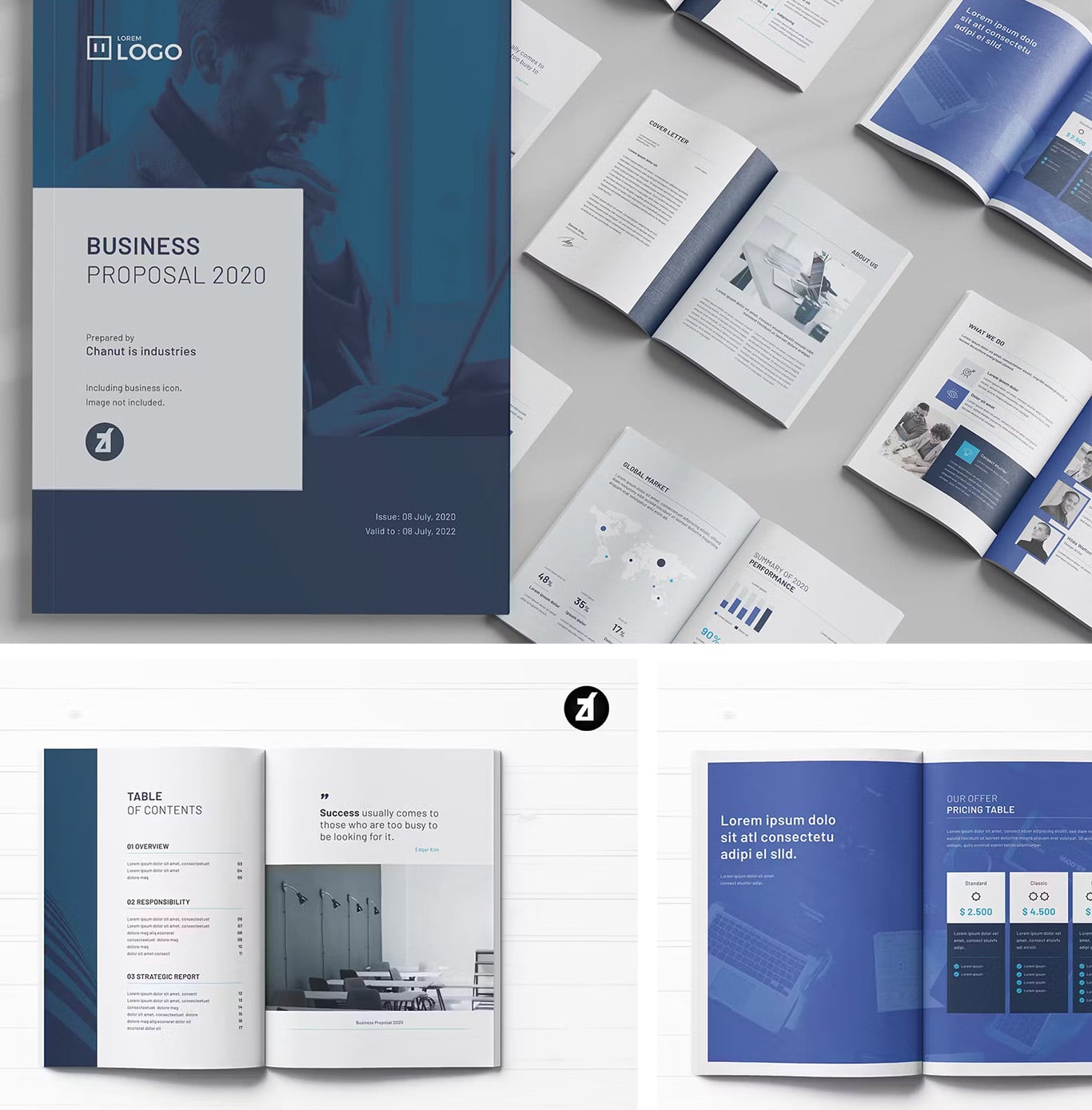 Impress clients with this professional proposal layout featuring a soothing blue gradient.