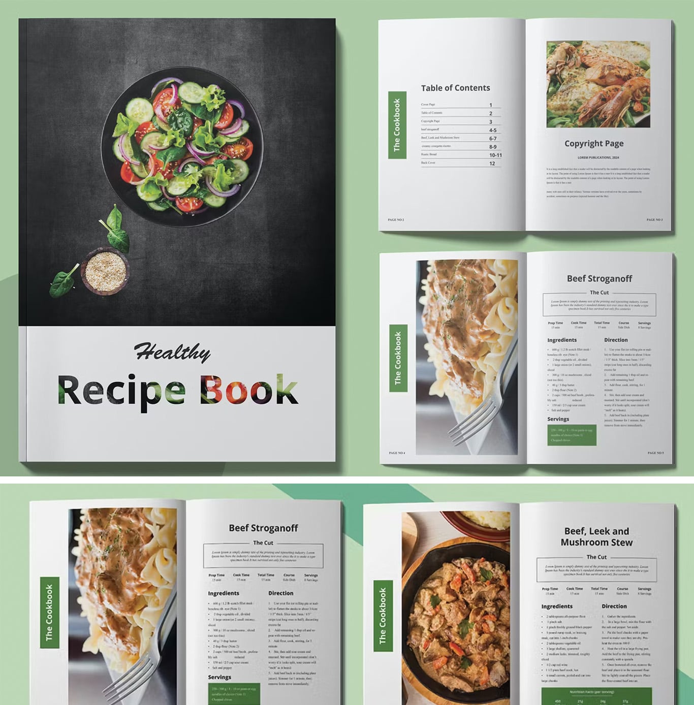A delightful green cookbook for showcasing healthy and delicious recipes. Ideal for health and wellness brands.