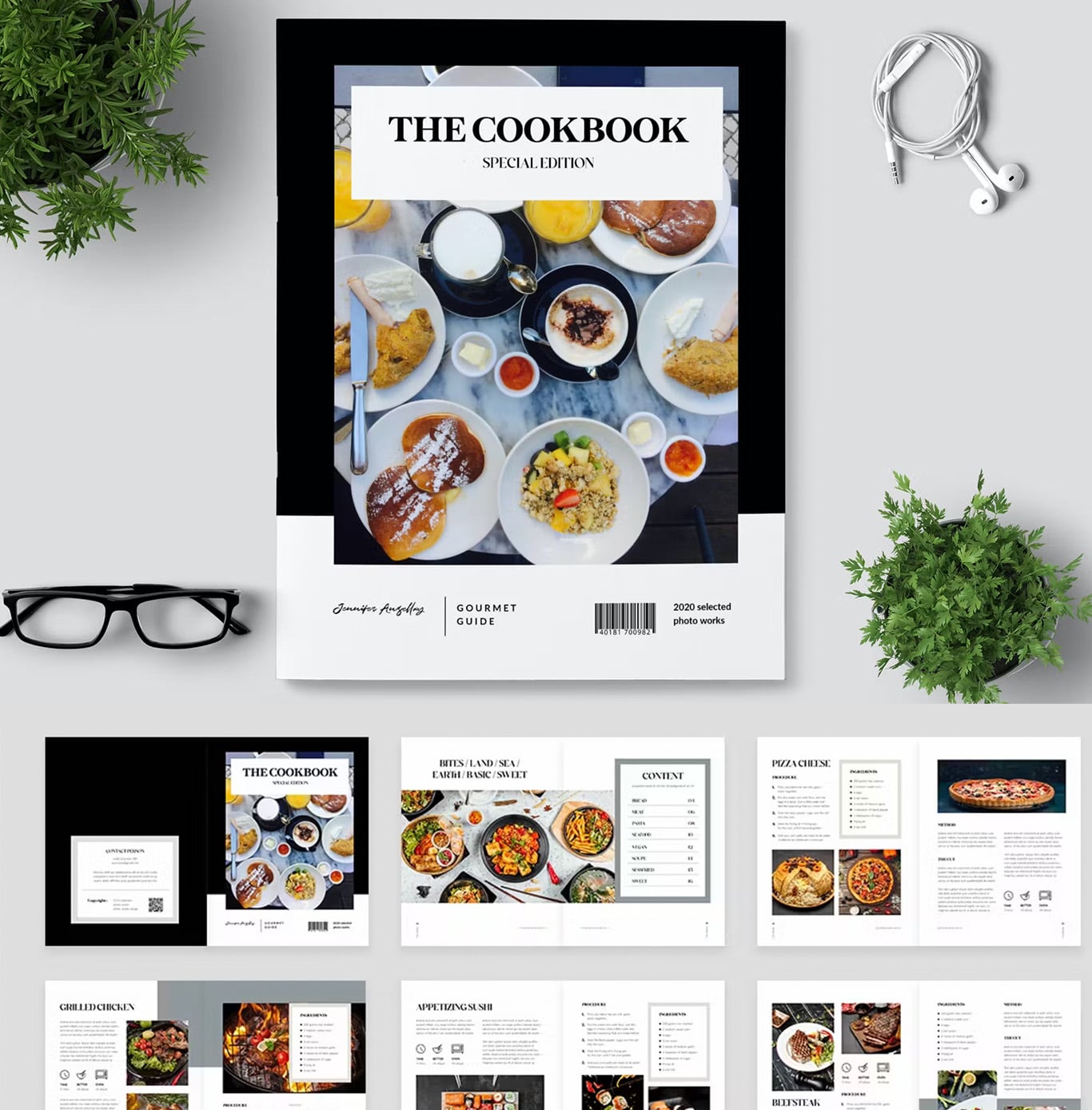 Impress food enthusiasts with this modern and clean cookbook design. Showcase your recipes beautifully.