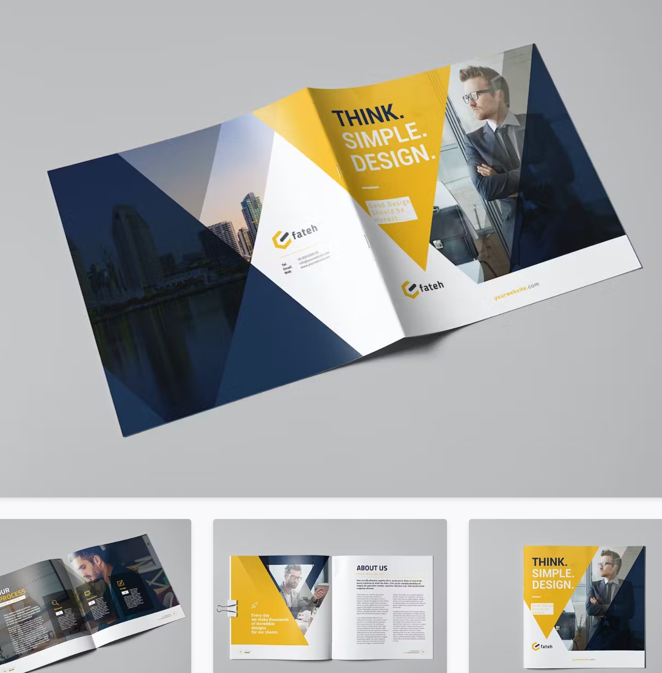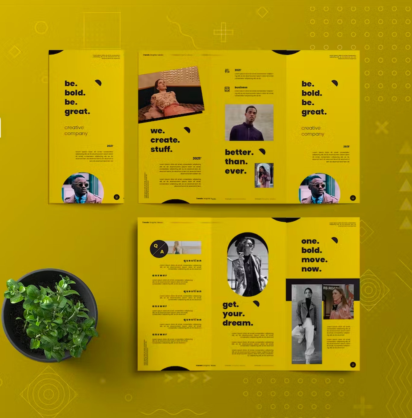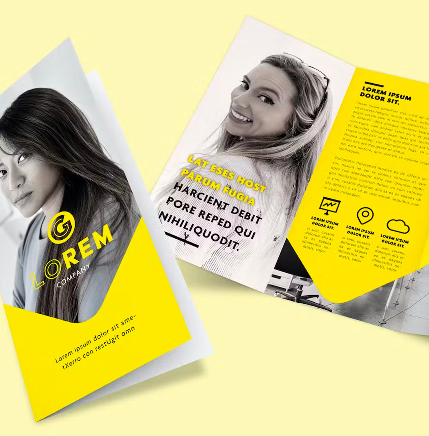 Bright and straightforward, this yellow brochure brings a cheerful vibe to your business.