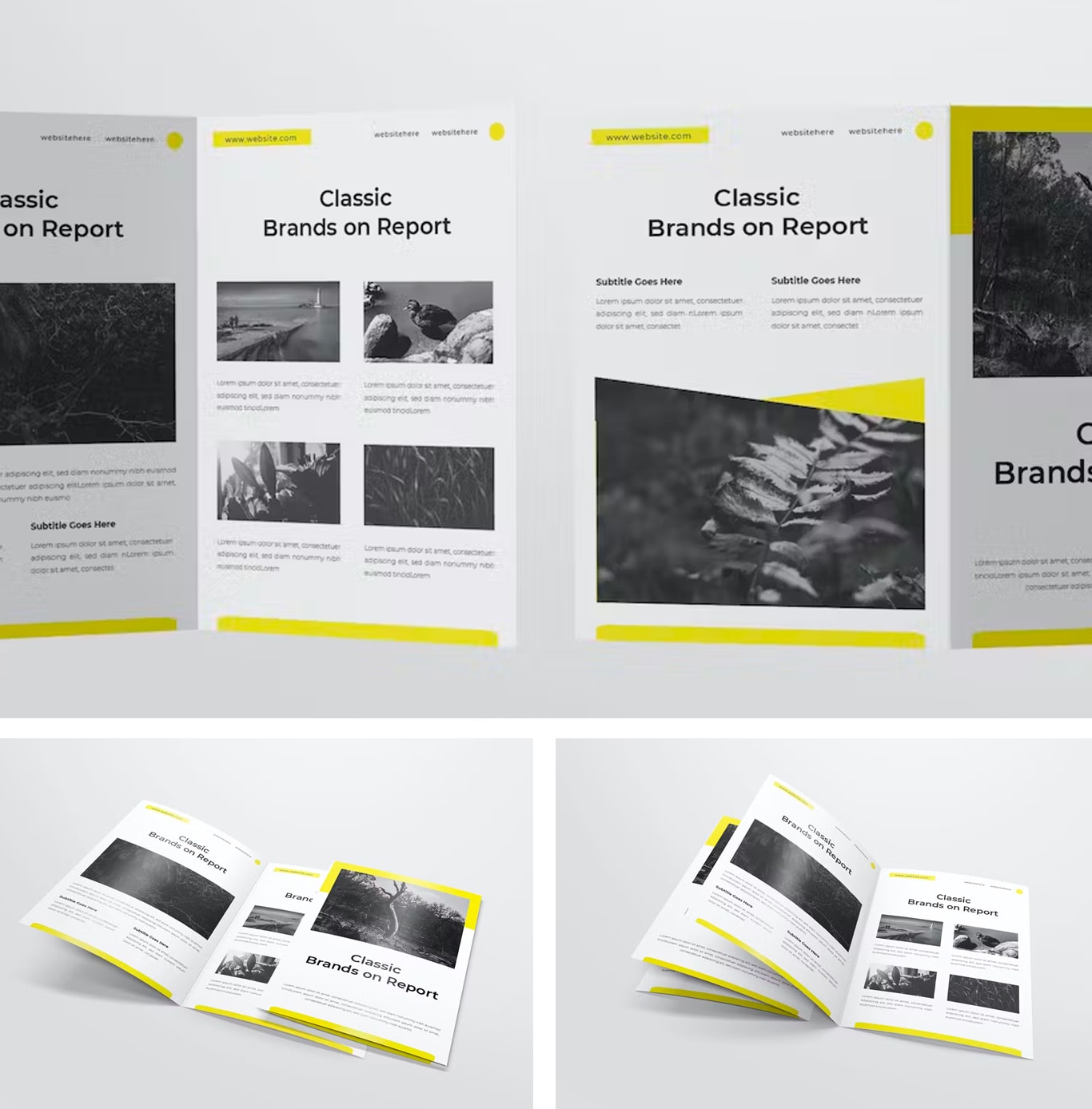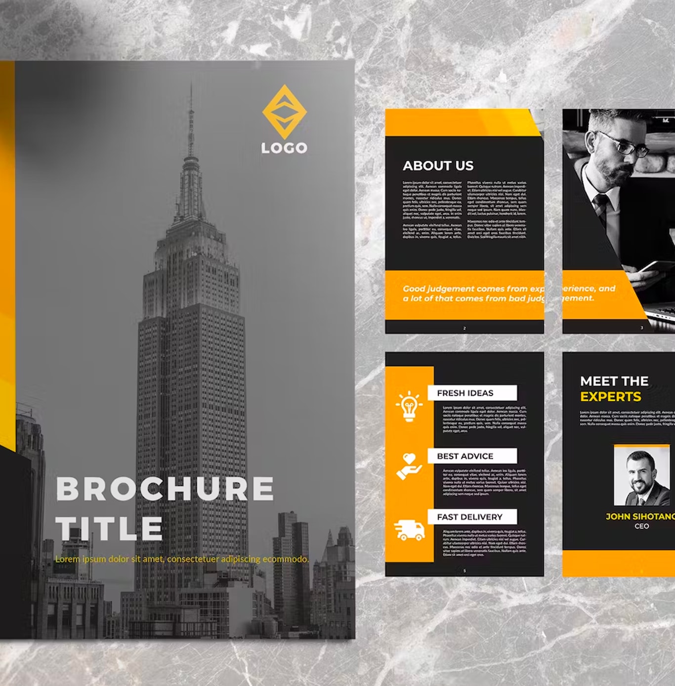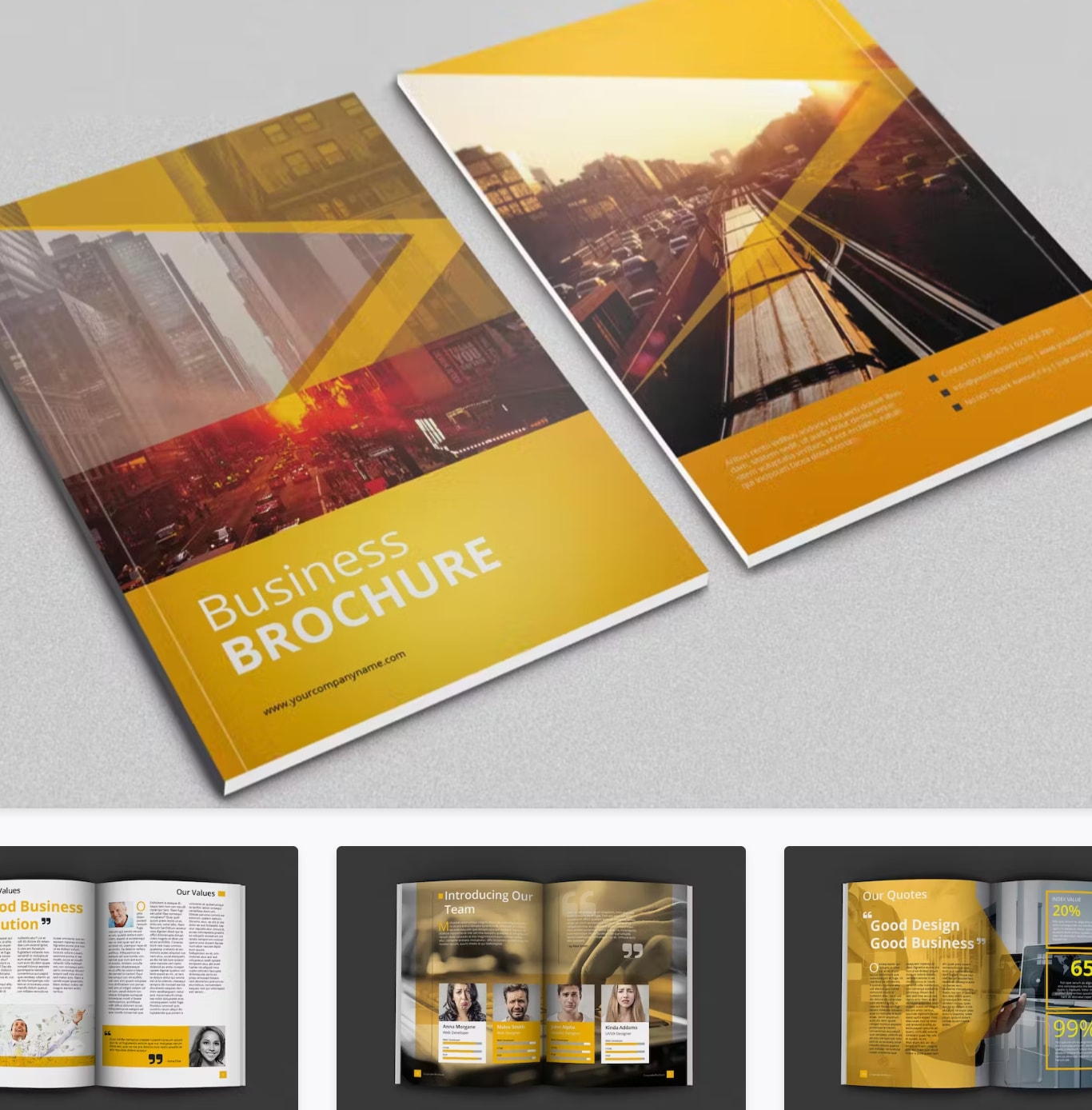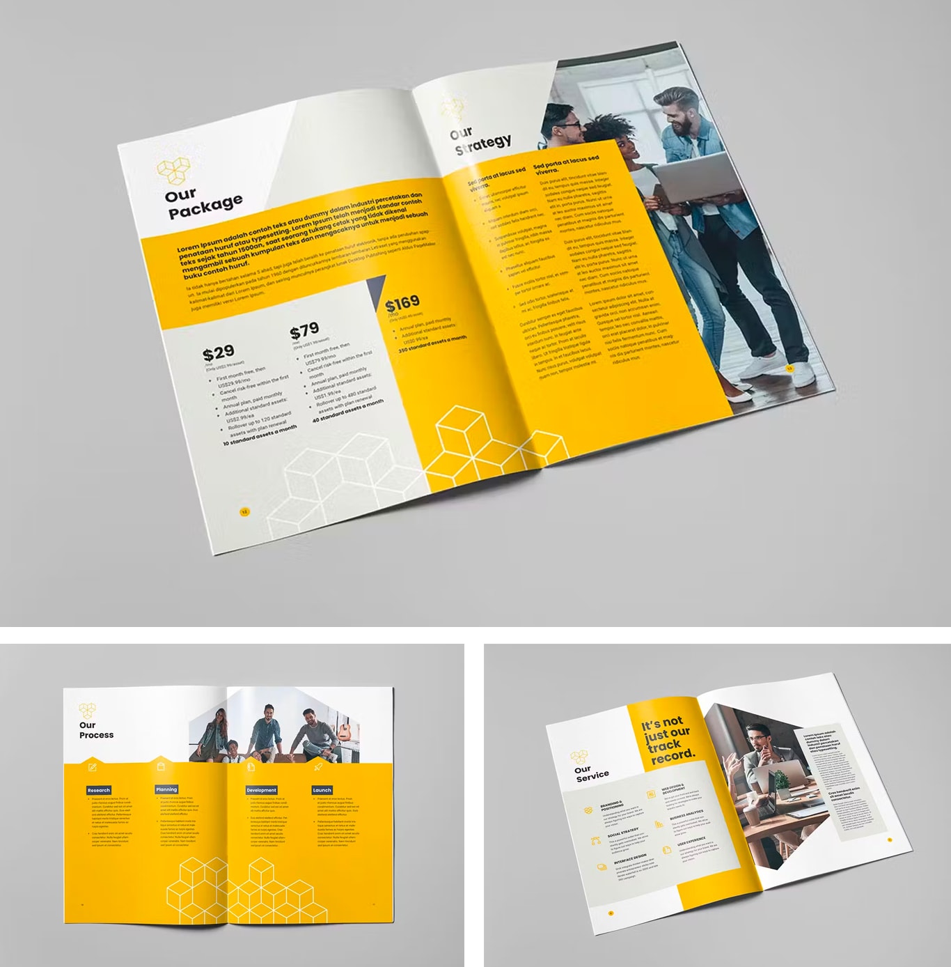 Bright and straightforward, this yellow brochure brings a cheerful vibe to your business.