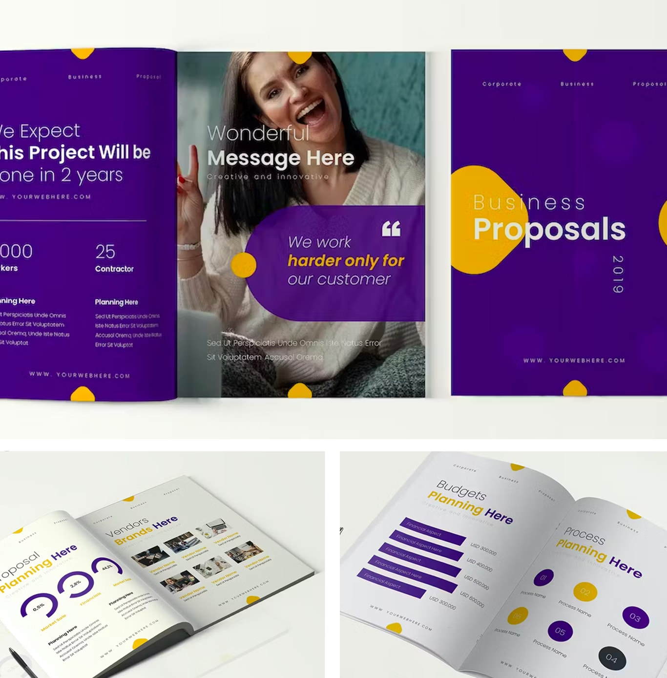 Eye-catching blue and yellow design to present your business proposals in a vibrant and professional manner.