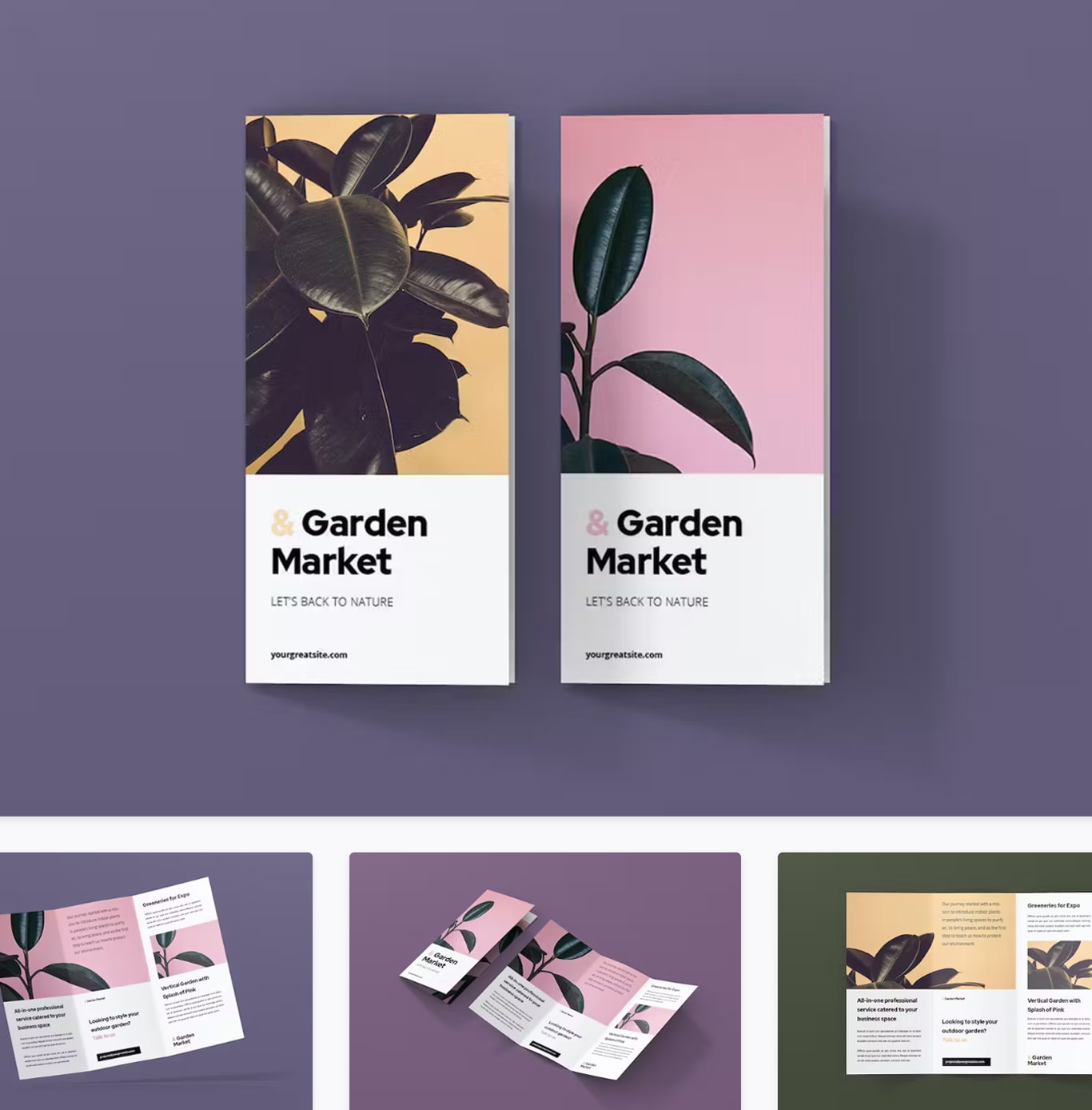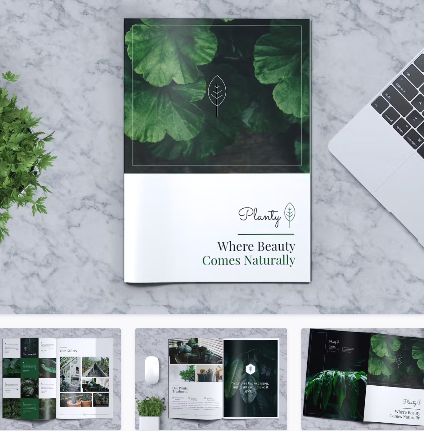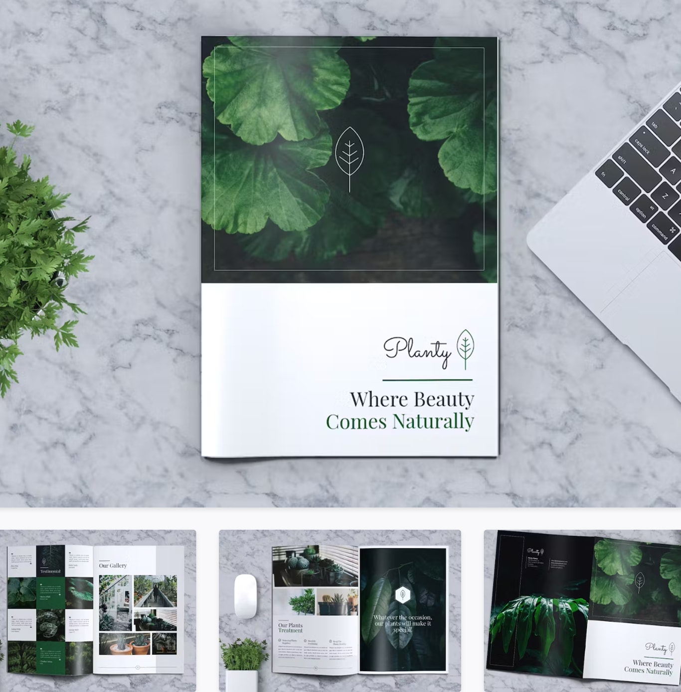 This white based template with grey tones is perfect for a botanical brochure. It gives a vibe of serenity and clearness. It has a high quality brochure design and it is an elegant masterpiece.