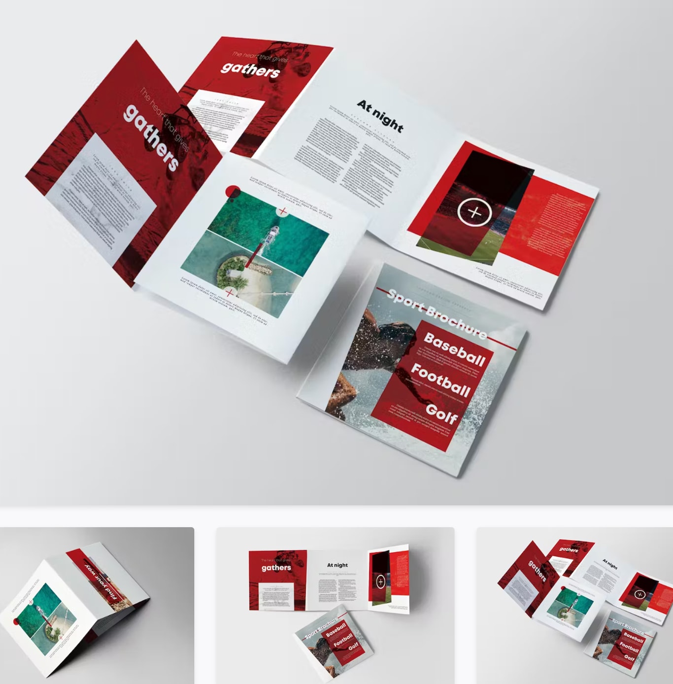 You can use this template for a travel agency or a destination brochure. It has a square design, red shades and a white background.