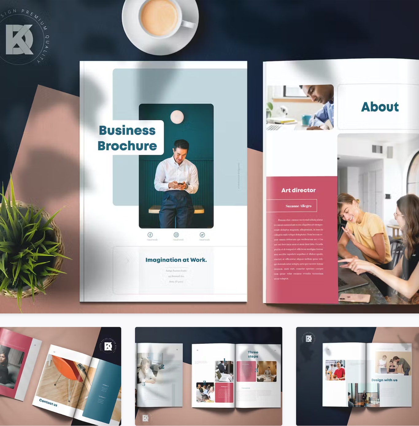 When you start a new business, you need an impressive and elegant brochure. This template gives a black and white vibe with a gentle pink shade. It's sophisticated and high-quality.