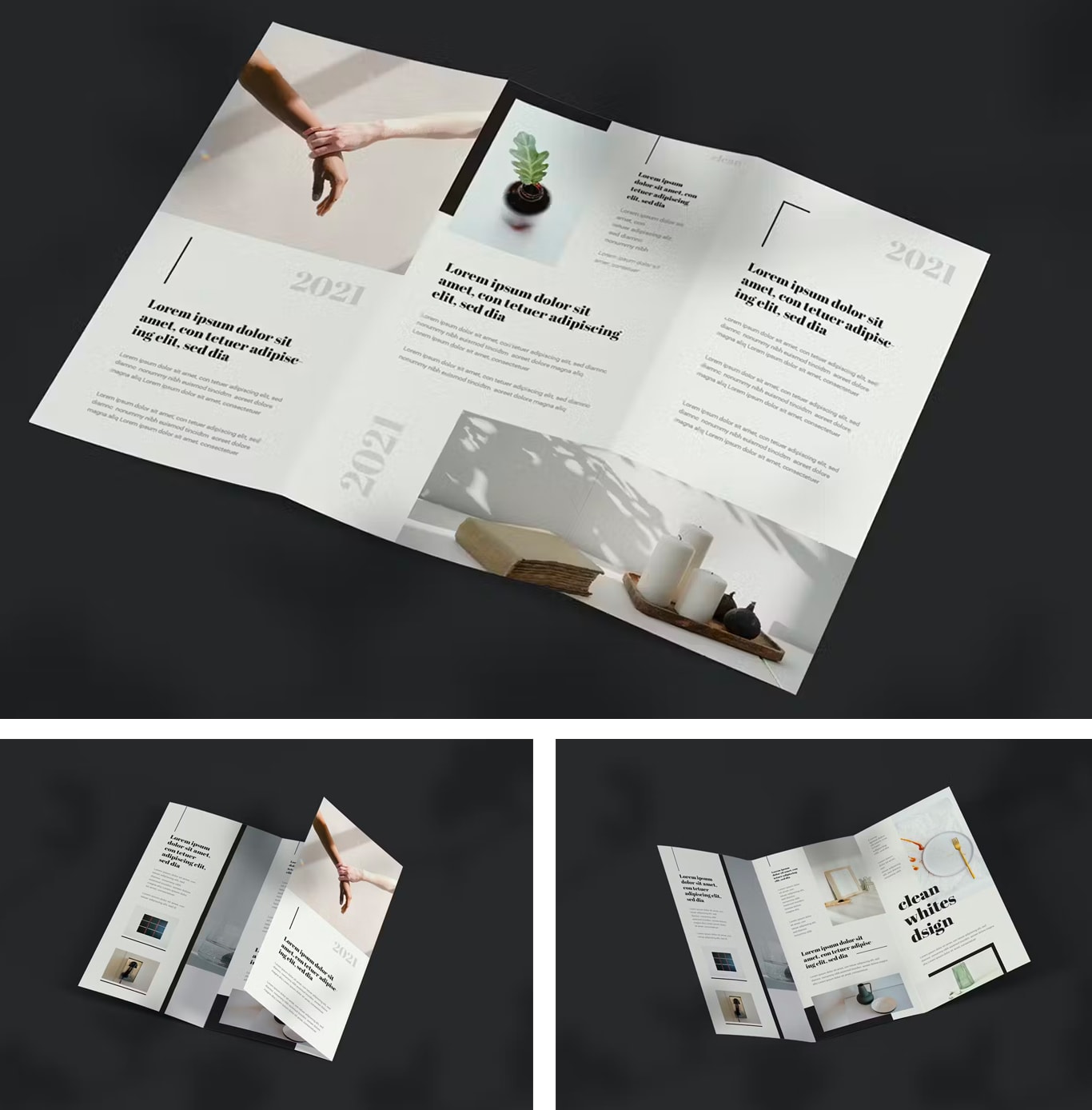 Pure and clean, this white trifold is perfect for a fresh and uncluttered presentation.