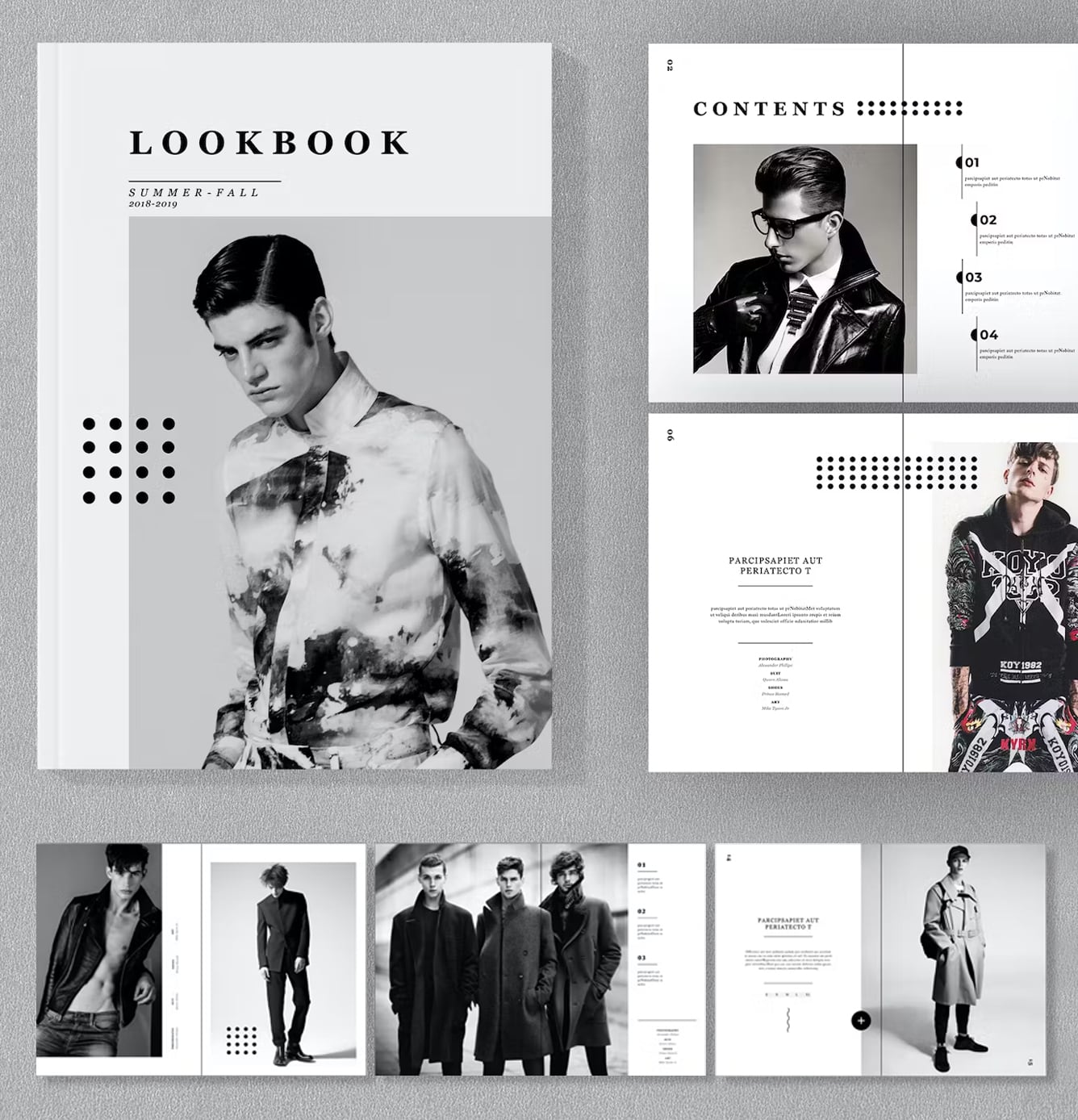 Show off your cutting-edge designs with this sleek and modern lookbook template. Perfect for trendsetters and innovators.