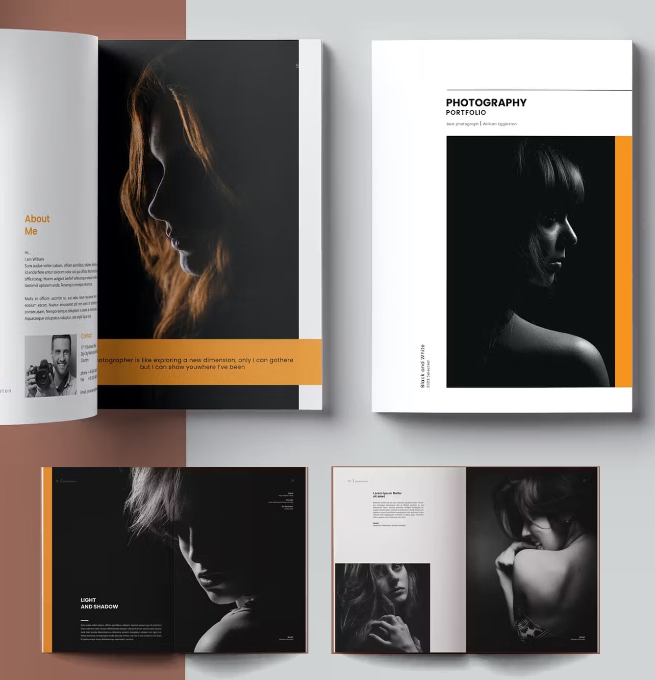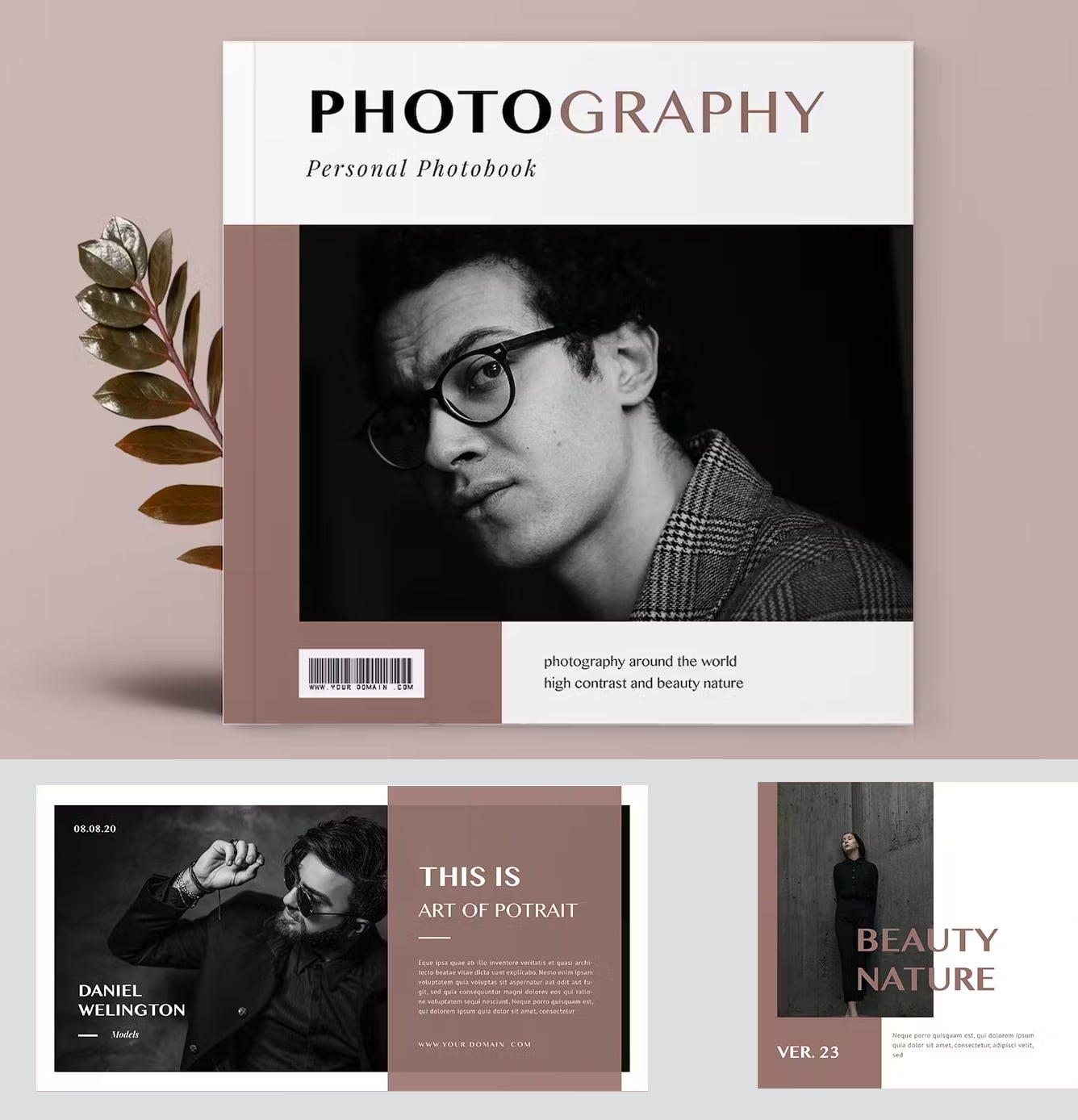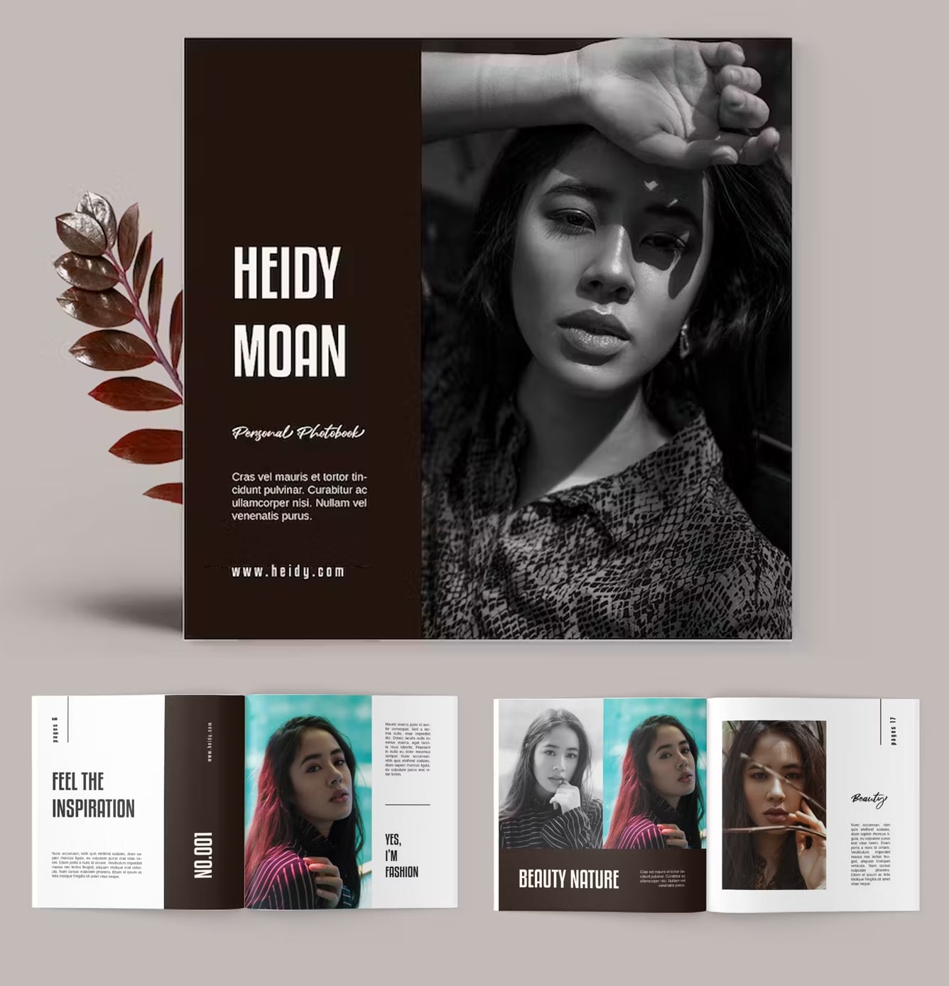 Show off your persona in portraits using this fashionable photobook template. Add your images to the spaces and just edit the text descriptions to convey your visuals' message.