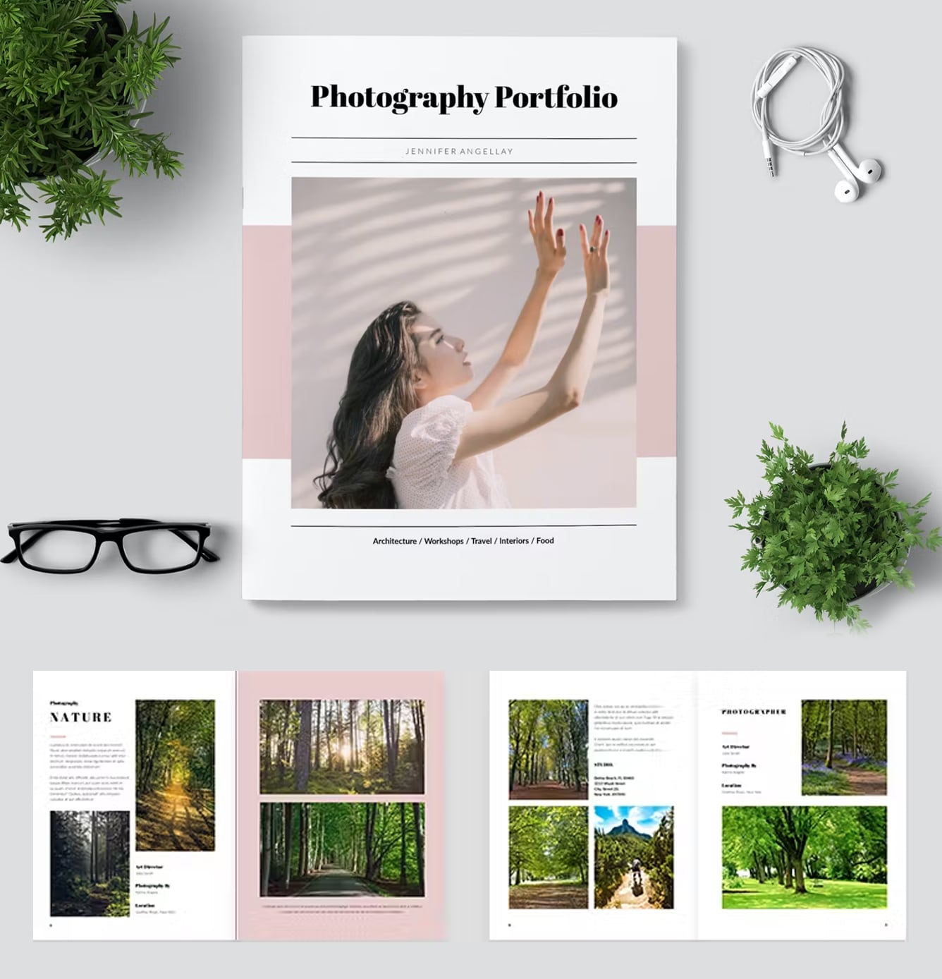 Strut your award-winning shots in a flawless photobook. This simple portrait template will allow you to neatly collage and highlight your images with serif and cursive text styles. Simply add your photographs, titles, and descriptions to the pages!