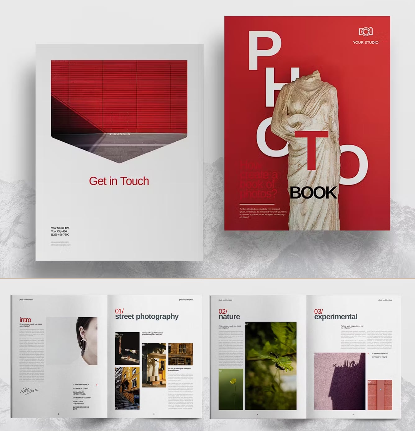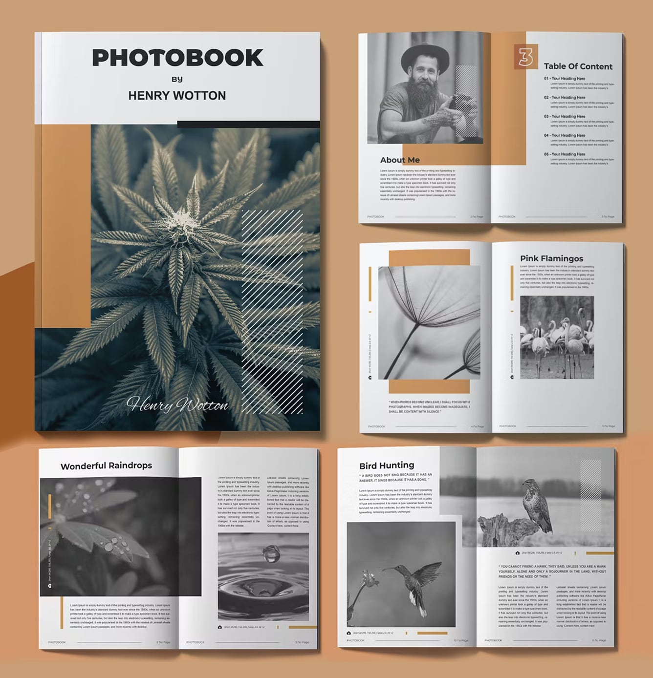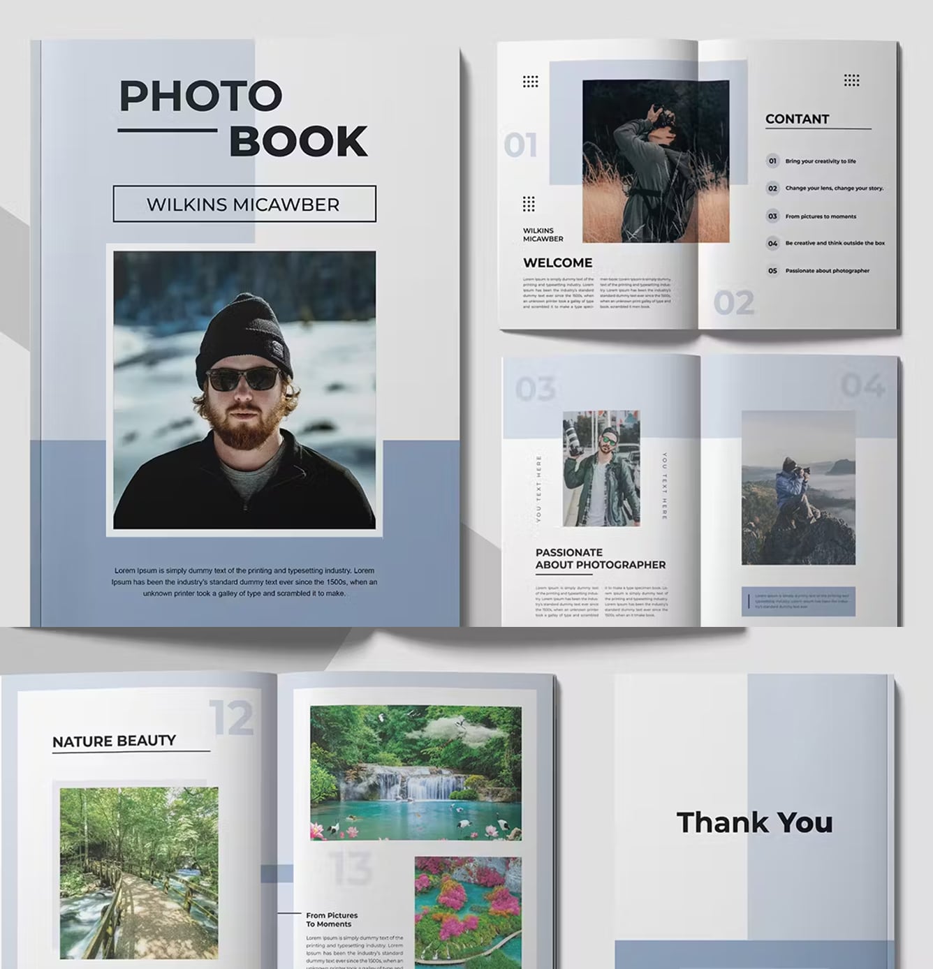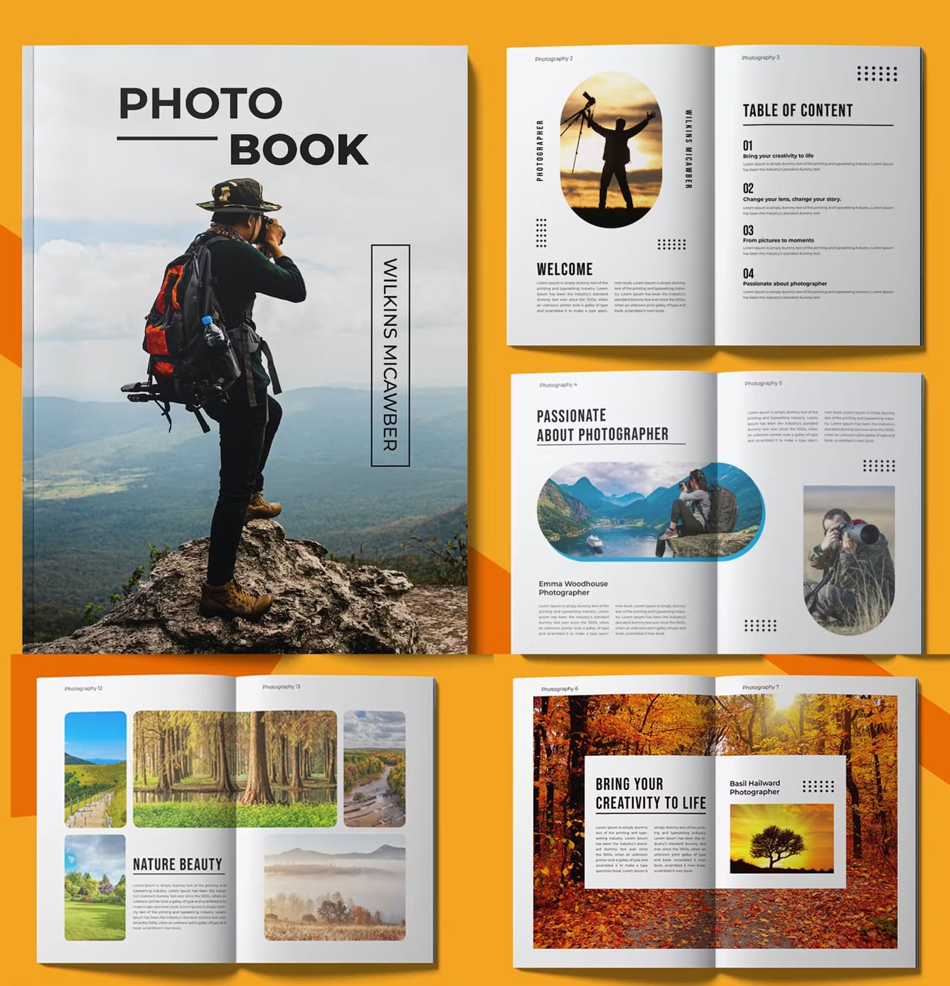 Peak in the photography field with a pacific compilation of your greatest shots using this simple photobook template. It displays your images at their maximum with enough white spaces to balance the overall organization.