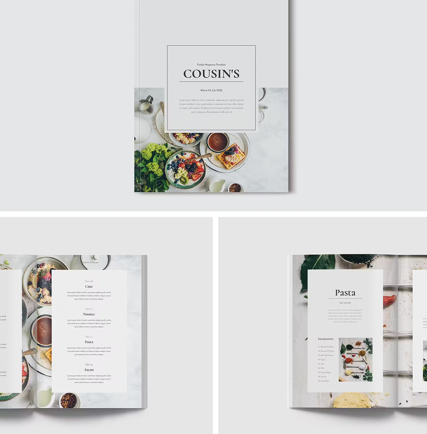 Clean and minimalist, this cookbook template is suitable for various publication projects - hotels, restaurants, travel, lifestyle, culture, and more.