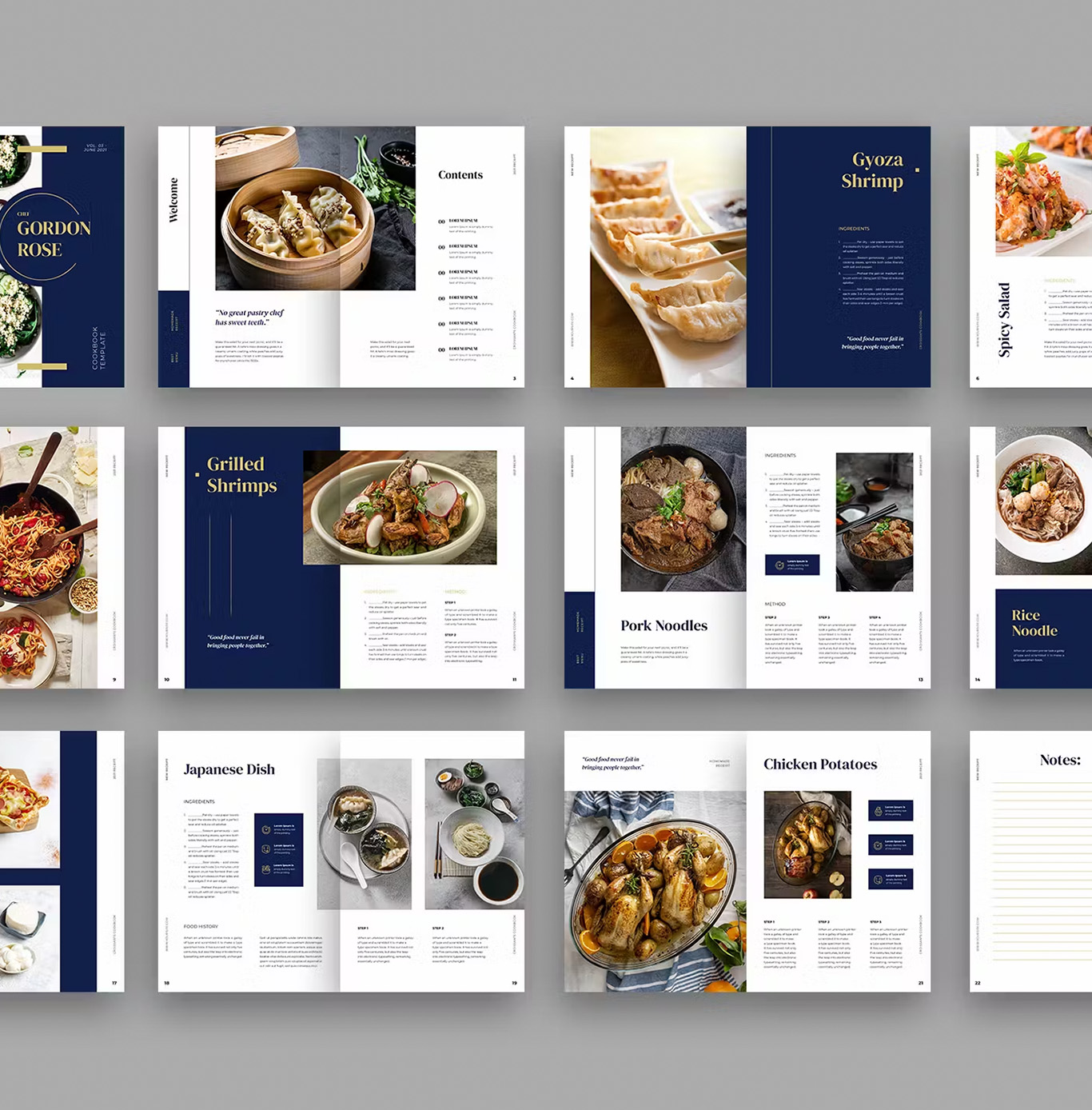 We hope our diverse collection of cookbook templates helps you kickstart your next project. Or in the least, they can provide some inspiration. We can't wait to see your recipes (in a beautifully designed layout, no less).