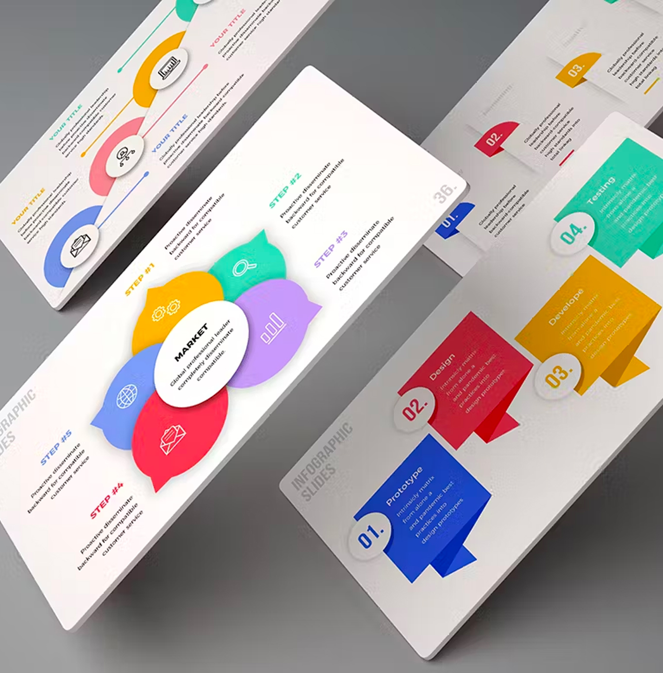 Want to make use of different shapes in your presentation design while still keeping that clean corporate look? This is the template for you!