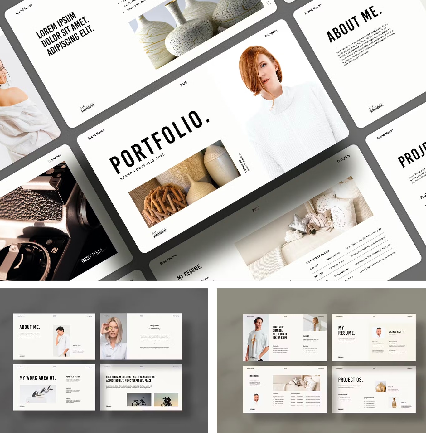 This portfolio template is the perfect choice for those who want a sophisticated look without being too flashy. With its basic colors and elegant design, it's sure to make a statement. Embrace the basics with a touch of sophistication in this clean and polished brand template.