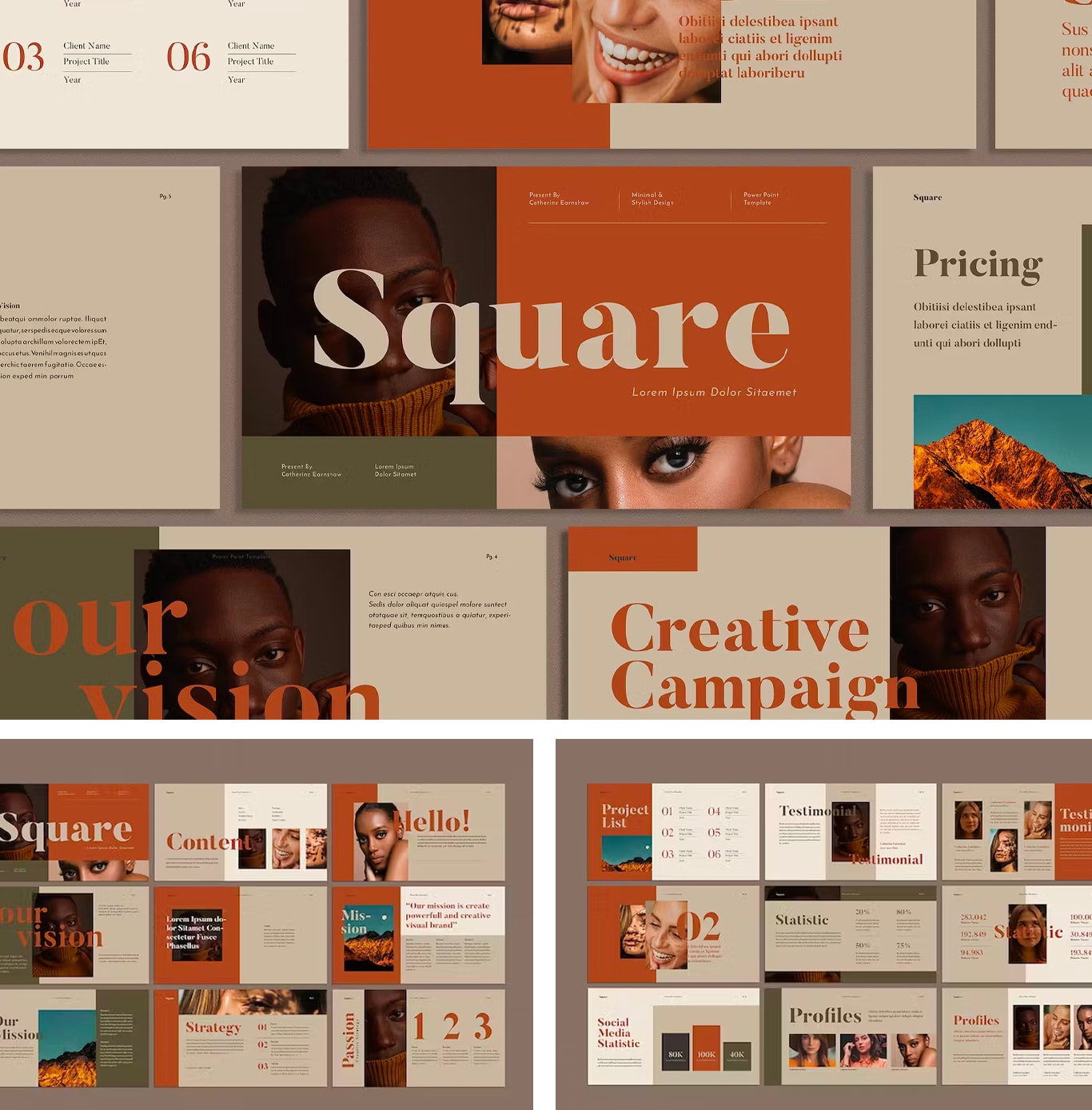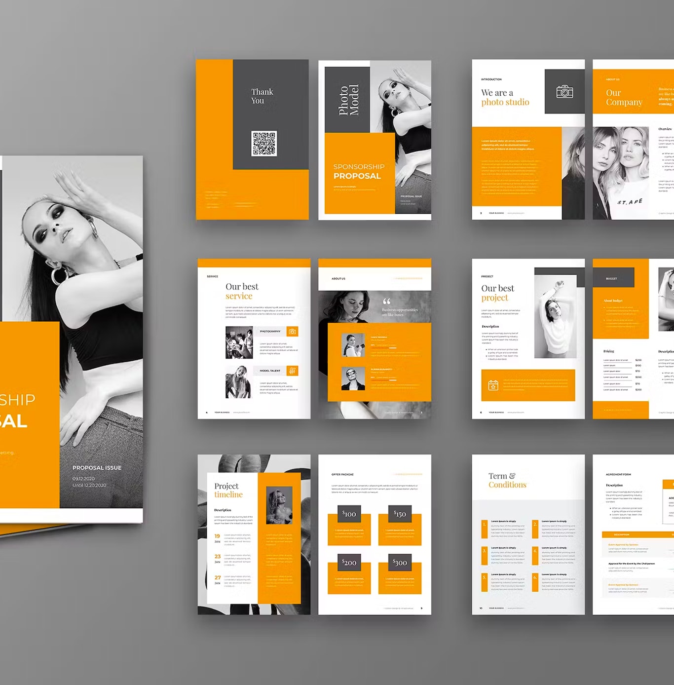 Presenting bold, modern, stylish concepts? Here's a template that ticks all those boxes! With a stunning orange flare, this proposal presentation file gets straight to the point without hesitation.
