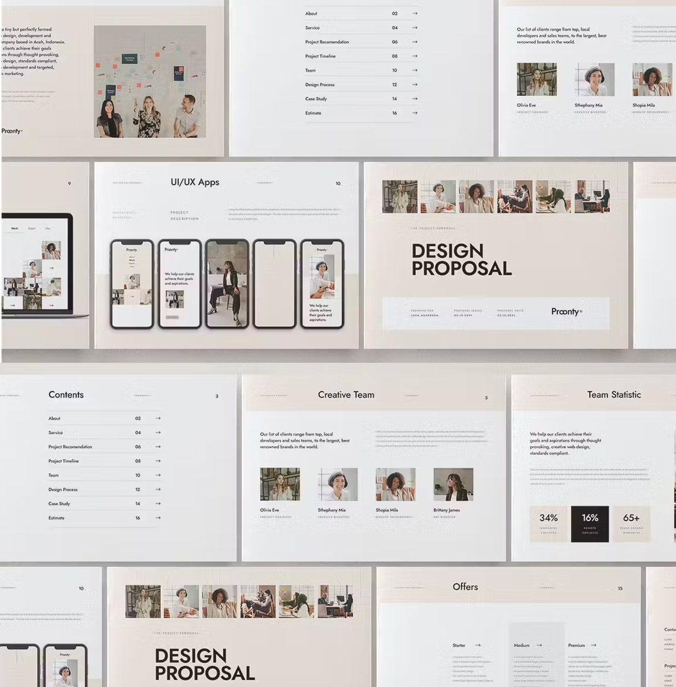 A minimalist approach for a business proposal - with just a touch of colour to keep things fresh and exciting (visually). Help your reader focus on what you have to say.