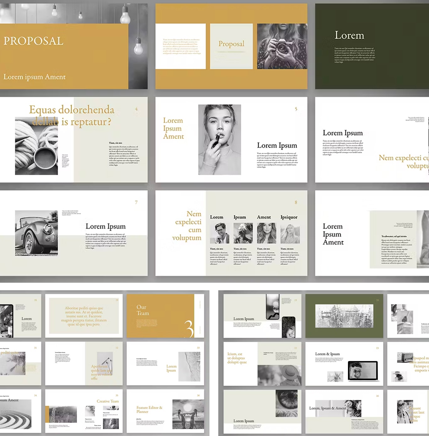 Propose your ideas using a formal but modernly attractive layout. With minimal hues of gray and yellow accents, this template will surely dapper up your presentation. And it is readily editable to hold your images and texts.
