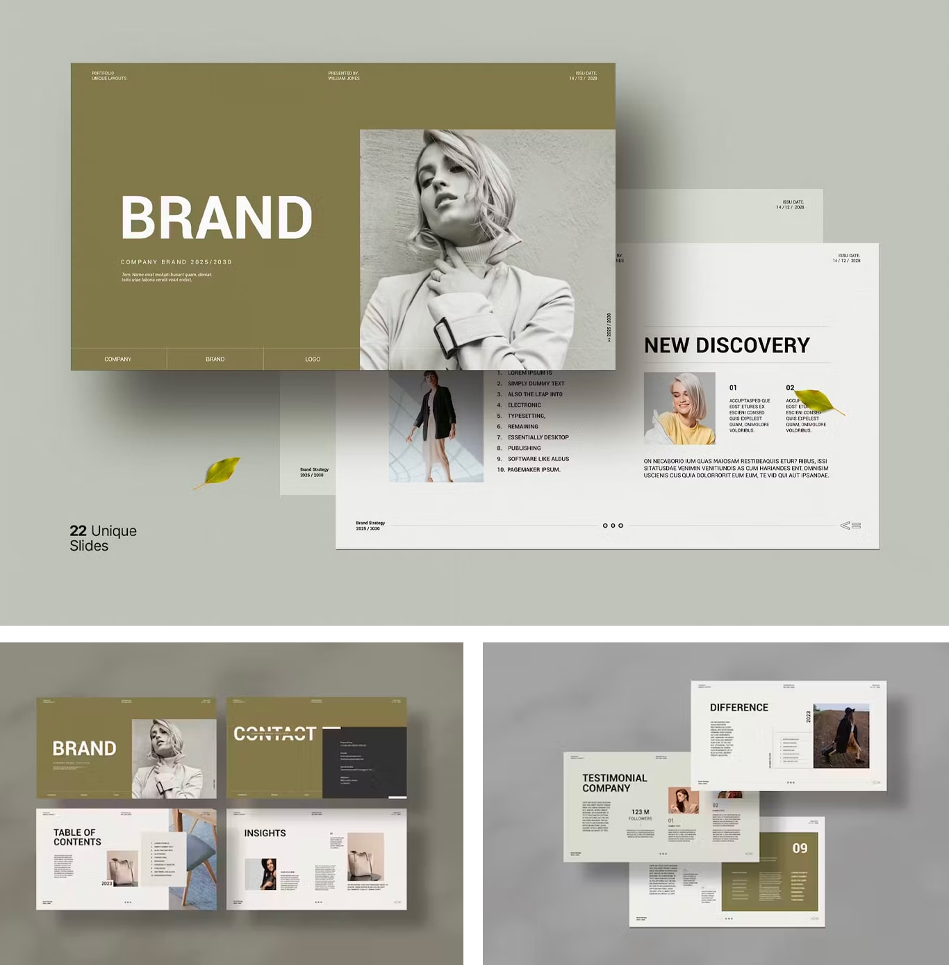 This presentation template is a clean and minimalist choice for those who want to showcase their work in a sophisticated way. With its beige colors and elegant design, it's sure to make a statement. Clean, minimalist, and chic - this brand template lets your work speak with confidence in a beige palette.