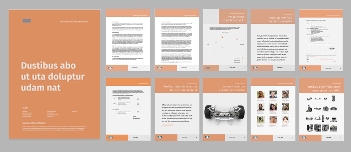 It's extremely rare to have a proposal template as creative as this one. The little ingenuity of this template is that the images you've placed will span across a two-page spread, thereby making the template full of sense of design.